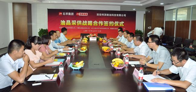 9月13日的石羊集團(tuán)總部,秋高氣爽、陽光燦爛,9點(diǎn)30分,經(jīng)過行政部與市場部前期的緊張籌備,油脂事業(yè)部與陜西建興農(nóng)業(yè)科技有限公司、寧夏鋒潤糧油有限公司、山東三星玉米科技有限公司及新疆泰昆集團(tuán)股份有限公司四家油企“油品采供戰(zhàn)略合作簽約儀式”在三樓會議室如期舉行。